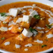 Soft paneer cubes in a creamy, mildly spiced tomato gravy.